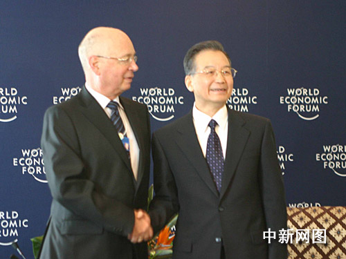 施瓦布在會(huì)見(jiàn)中對(duì)中國(guó)改革開(kāi)放30年來(lái)取得的巨大成就表示祝賀,并感謝溫家寶總理剛過(guò)春節(jié)就來(lái)到達(dá)沃斯。