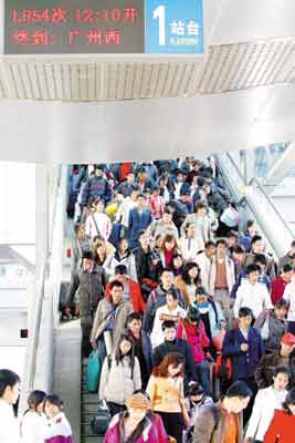 據(jù)向站長介紹,春節(jié)過后,昆明發(fā)往廣州、廈門、上海、重慶等城市的列車就特別擁擠,其中尤以外出務(wù)工人員居多。去年11月份,從廣州、東皖回昆的返鄉(xiāng)農(nóng)民工客流量非常大,但兩個月過去了,依然還是有大批的人涌向省外務(wù)工。同時,由于今年春節(jié)期間氣候好,昆明站列車到站的正點(diǎn)率比較高,完善的服務(wù)也保證了廣大乘客能夠及時出行。 (記者李嚴(yán)) (昆明日報(bào))