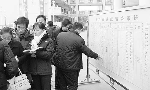 孫靚靚等20名女青年報名競聘,她們中有團江蘇省委的主任科員、副主任科員,泰州市委辦公室和泰州市財政局的副主任科員,泰州市高港區(qū)組織部干部教育科干部等。12月14日,她們和其他應試者一起參加了筆試;12月16日公布的筆試成績,孫靚靚名列相同職位的第五名;12月27日,孫等進入面試;12月30日公開選拔領導干部綜合成績出爐,孫的綜合成績躍居相同職位的第一名,進入體檢等程序。
