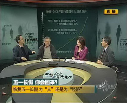 劉思敏:如果有證據(jù)證明,全中國就只有蔡教授最聰明,這個結(jié)論就成立。為什么呢?因為我們不否認(rèn),盡管現(xiàn)在有些人說,希望否認(rèn)當(dāng)初設(shè)立黃金周是為了拉動內(nèi)需。我覺得根據(jù)我的研究,當(dāng)初的最初目的就是為了拉動內(nèi)需。那個時候是1999年亞洲金融危機的時候,我們的確把黃金周作為一個工具使用了,那個時候是全國的共識,至少是國務(wù)院的共識,否則不會這么實行。現(xiàn)在在全球性的金融海嘯的背景下,全國那么多人士提出恢復(fù)五一黃金周,那么多省份,包括黃華華省長也提出,而且認(rèn)識到對拉動經(jīng)濟的作用。