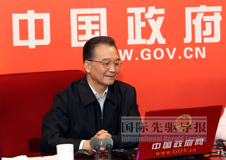 國(guó)際先驅(qū)導(dǎo)報(bào)記者楊眉發(fā)自北京 “溫總理來(lái)啦!”2月28日下午,從中國(guó)政府網(wǎng)和新華網(wǎng)的工作室內(nèi)傳出這樣一聲歡呼。隨后,工作人員小張跟著人群擠到門口,卻踮起腳都看不到溫總理的面孔。身前的同事回頭沖她一樂(lè):“沒(méi)辦法,總理就是這么受歡迎!