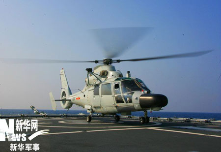 3月2日,隨海軍“廣州”號導(dǎo)彈驅(qū)逐艦赴巴基斯坦參加“和平-09”海上多國聯(lián)合軍演的艦載直升機,在印度洋進行了參演前的直升機飛行訓(xùn)練。
