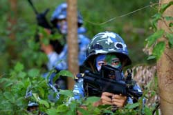 何新瑛指導(dǎo)員向我們介紹,面對(duì)未來(lái)戰(zhàn)場(chǎng)的惡劣環(huán)境,面對(duì)兩棲偵察女兵隊(duì)所擔(dān)負(fù)的特殊任務(wù),其訓(xùn)練的難度強(qiáng)度是一般人難以想像的。作為一名女子陸戰(zhàn)隊(duì)員,每天除完成正常的訓(xùn)練課目外,在體能上必須堅(jiān)持做到“五個(gè)一百”,即100個(gè)俯臥撐,100個(gè)仰臥起坐,100個(gè)蹲下起立,100個(gè)曲臂伸,100次往返跑;同時(shí)還要綁著10多斤的沙包練5公里越野。這些最基本的體能訓(xùn)練要求,使每個(gè)姑娘都面臨著生理和心理的考驗(yàn)。盡管每年新入伍的戰(zhàn)士都有累得掉眼淚,但在部隊(duì)的教育以及戰(zhàn)友的關(guān)心幫助下,姑娘們都很堅(jiān)強(qiáng),憑著忠誠(chéng)于黨、獻(xiàn)身使命的崇高追求和熾熱情懷,一無(wú)往顧地沖在軍事斗爭(zhēng)準(zhǔn)備的第一線。