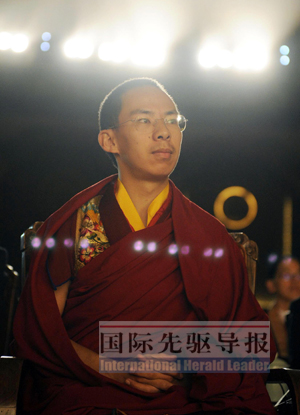 當(dāng)天下午,班禪與國家宗教局局長葉小文等人一起觀看大型音樂史詩情景劇《吉祥頌》,演出結(jié)束后,班禪在舞臺(tái)前方先后以藏語、漢語和英語說道,“我祈愿世界和平,佛祖保佑,六道眾生!毕愀邸洞蠊珗(bào)》評(píng)論稱,在本屆論壇上,年僅19歲的十一世班禪出人意料地頻頻亮相,成為備受各方矚目的“頭號(hào)明星”。