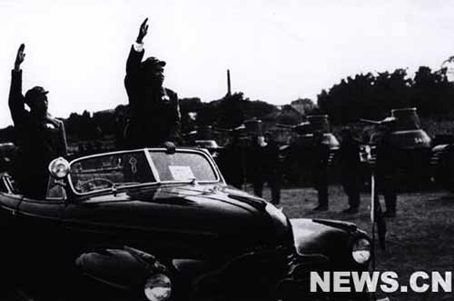 這次閱兵,按閱兵式和分列式兩類程序進行,閱兵式在靜止狀態(tài)下進行,分列式在行進狀態(tài)下進行。閱兵式歷時兩個半小時。開國大典閱兵,以步兵、騎兵為主,有火炮119門,坦克和裝甲車152輛,汽車222輛,飛機17架,軍馬2344匹。海軍只有一個方隊,空軍只有17架飛機,1.64萬名受閱官兵中,技術兵只占3%。那時,中國人民解放軍絕大多數是步兵。整個閱兵歷時兩個半小時。