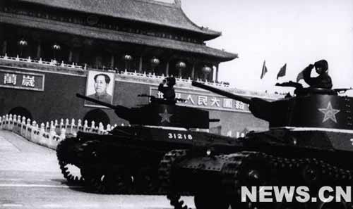 中華人民共和國(guó)第一屆國(guó)慶節(jié)慶祝大會(huì),今天在北京天安門前人民廣場(chǎng)舉行。慶祝大會(huì)中進(jìn)行了人民解放軍陸空海軍各兵種部隊(duì)的盛大檢閱,和首都各階層人民的盛大示威。今天參加這個(gè)慶祝大會(huì)的共四十余萬(wàn)人。