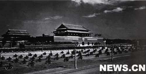 閱兵式開始。中國人民解放軍朱德總司令乘車馳過整隊而立的部隊前面,檢閱并向他們致節(jié)日的祝賀。閱兵后,朱德總司令登臨檢閱臺宣讀《中國人民解放軍總部給全國武裝部隊的命令》。
