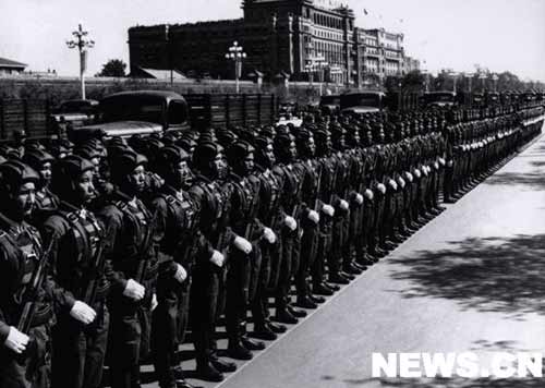 人們不斷向受閱部隊(duì)歡呼致敬,熱烈地慶祝祖國(guó)忠誠(chéng)的保衛(wèi)者--中國(guó)人民解放軍在現(xiàn)代化革命軍隊(duì)的建設(shè)中,所取得的光輝成就。(新華社1959年10月1日訊)