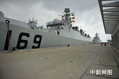 當(dāng)天上午九時許,創(chuàng)造中國海軍多項歷史、功勛卓著的“武漢”號、“?凇碧枌(dǎo)彈驅(qū)逐艦緩緩駛?cè)?三亞某軍港碼頭,受到岸上社會各界的熱烈歡迎。
