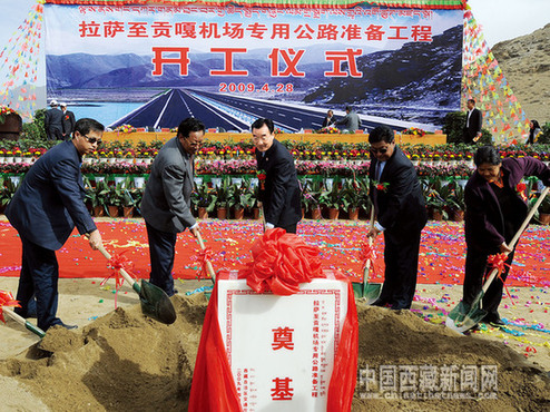 4月28日上午,西藏第一條高等級公路——拉薩至貢嘎機場專用公路準備工程正式開工奠基,這標志著西藏干線公路建設目標從通暢向快捷的轉(zhuǎn)型。