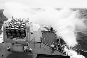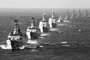 ——2002年5月至9月,中國(guó)海軍艦艇編隊(duì)首次環(huán)球航行,共穿越15條著名海峽水道,橫跨68個(gè)緯度,6次穿越赤道,訪問10個(gè)國(guó)家和港口,總航程33000海里。至此,中國(guó)海軍艦艇編隊(duì)壯游三大洋。同時(shí),一個(gè)新的重大轉(zhuǎn)折也在悄然完成。軍艦走出國(guó)門,開始從單純航渡出訪,轉(zhuǎn)變?yōu)檫h(yuǎn)航訓(xùn)練結(jié)合出訪,甚至是以訓(xùn)練為主。征服遠(yuǎn)海大洋的能力,體現(xiàn)著一支現(xiàn)代海軍的訓(xùn)練水平。1980年10月,南海艦隊(duì)艦艇編隊(duì),首次出巴林塘海峽到太平洋遠(yuǎn)航訓(xùn)練。經(jīng)過海峽西口的“魔鬼三角洲”時(shí),因缺乏經(jīng)驗(yàn),一艘軍艦上的10名艦員被巨浪打下大海,2人遇難。這是人民海軍走向大洋付出的血的代價(jià)。此后,海軍遠(yuǎn)航編隊(duì)經(jīng)驗(yàn)越來越豐富,不畏暗礁險(xiǎn)灘,勇闖驚濤駭浪。在南中國(guó)海,戰(zhàn)艦遭遇狂風(fēng)巨浪,重達(dá)1噸的鐵錨被風(fēng)浪掀上甲板;在太平洋,編隊(duì)遭遇持續(xù)半個(gè)月之久的大風(fēng)浪,滿載排水量為數(shù)萬噸的補(bǔ)給艦強(qiáng)烈震顫,逆風(fēng)頂浪,頑強(qiáng)前進(jìn);在比斯開灣,編隊(duì)遭遇12級(jí)大風(fēng),艦體左右搖擺近30度,艦艉螺旋槳多次露出海面……20多年過去,人民海軍遠(yuǎn)航訓(xùn)練已經(jīng)發(fā)展成為一種常態(tài):每年有上百艘次水面艦艇駛向遠(yuǎn)海大洋,晝夜連續(xù)航行從數(shù)百海里到數(shù)千海里,潛艇水下隱蔽待機(jī)由數(shù)十天到數(shù)月,航空兵長(zhǎng)途奔襲由一般氣象條件到復(fù)雜氣象條件,上千艘次艦機(jī)在太平洋海域進(jìn)行多課目訓(xùn)練。