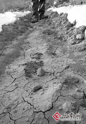 據(jù)介紹,干壩村所處海拔超過(guò)1300米,由于缺水易干旱得名。羊皮寨小組有一個(gè)水源點(diǎn),不過(guò)進(jìn)入3月后,水變得越來(lái)越小了,就連那里61戶人家的人畜飲水都不能保證,更不奢望有水澆灌烤煙地了。有村民告訴記者,不得已,他們開(kāi)始用牛馬,或者用摩托車到很遠(yuǎn)的地方去馱水。“我們一家人一天要用100公斤左右的水,洗臉腳的水要節(jié)約下來(lái)煮豬食,有時(shí)就連人的尿液也要節(jié)約下來(lái)喂牲畜!币幻迕裾f(shuō)。