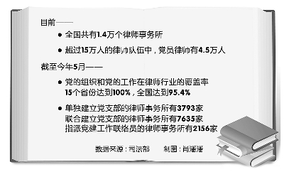 黨的十七大對包括律師行業(yè)在內(nèi)的新社會組織黨建工作提出明確要求。2008年,中央組織部和司法部聯(lián)合發(fā)文,提出2009年6月實現(xiàn)黨的組織和黨的工作在律師行業(yè)全覆蓋的目標(biāo)。