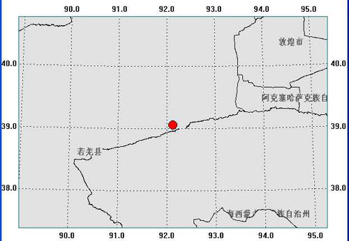 據(jù)測定,此次地震震中位于北緯三十九點一度, 東經(jīng)九十二點一度。目前還沒有人員傷亡和財產(chǎn)損失的報告。