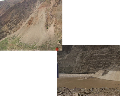 龍開口水電站于2007年9月開工,不到兩年的時間大壩已經(jīng)頗具規(guī)模。主壩開始澆灌水泥。金沙江從導(dǎo)流明渠穿過,原來的河道被截流用于建壩。
