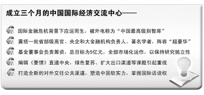 中國國際經(jīng)濟交流中心(以下簡稱“國經(jīng)中心”)正是在此背景下應(yīng)運而生,目標(biāo)就是辦成民間智庫,融匯高層、權(quán)威資源,進行前瞻性、戰(zhàn)略性、全局性研究,為公共政策提供智力支撐,為企業(yè)跨國經(jīng)營提供咨詢服務(wù)。
