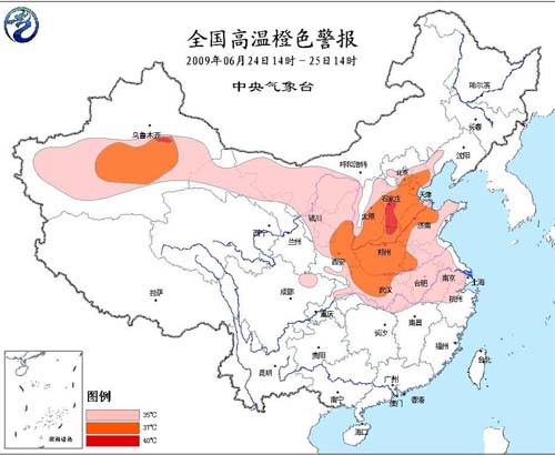 預(yù)計(jì),今天中午到明天中午,華北大部、黃淮、江淮、江漢、江南東北部及陜西大部、寧夏大部、甘肅北部、內(nèi)蒙古西部、新疆南疆盆地等地有35℃以上的高溫,其中,河北中南部、京津、山西南部、山東西部、陜西東南部、河南、湖北北部以及南疆盆地等地的部分地區(qū)最高氣溫可達(dá)37~39℃,河北西南部、河南北部、南疆盆地等地局部溫度可達(dá)40℃。