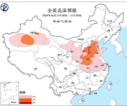中新網(wǎng)6月24日電 據(jù)中國(guó)氣象局網(wǎng)站消息,今天白天,北京、天津、河北、河南以及山東等省成為太陽(yáng)的重點(diǎn)“烘烤”對(duì)象,中央氣象臺(tái)今晨繼續(xù)發(fā)布高溫預(yù)報(bào),預(yù)計(jì)上述地區(qū)今天的最高氣溫將到37~39℃,局地可達(dá)40℃。據(jù)中央臺(tái)專(zhuān)家介紹,這樣的高溫天氣會(huì)隨著一股南下的冷空氣,有望在26日結(jié)束。