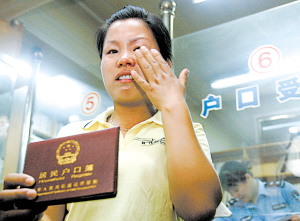 緊緊握著剛剛從戶籍民警手中遞來的《上海市居民戶口簿》,閘環(huán)靈石環(huán)境衛(wèi)生工程公司管理員、徐州來滬農(nóng)民工李影抑制不住喜悅的淚水,“從來沒有想過有機(jī)會落戶上海,夢想成真的滋味,真好!”自《持有〈上海市居住證〉人員申辦本市常住戶口試行辦法》及實(shí)施細(xì)則公布后,李影等去年被評為全國優(yōu)秀農(nóng)民工的一批務(wù)工人員因符合“居轉(zhuǎn)戶”的激勵條件,成為首批落戶上海的幸運(yùn)者。