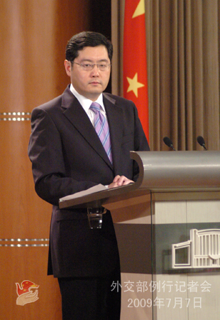 中新網(wǎng)7月7日電 據(jù)中國(guó)外交部網(wǎng)站消息,2009年7月7日,外交部發(fā)言人秦剛舉行例行記者會(huì)。答問(wèn)如下: