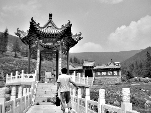 7月7日,穆新成籌資重建的古北臺寺,鮮有香客到來。藏經(jīng)院門前,石碑上刻著“胸襟寬大條條都是大道,心意清凈處處都是凈土”———常悟說,這是穆新成的座右銘,三年前他讓人刻碑而立。
