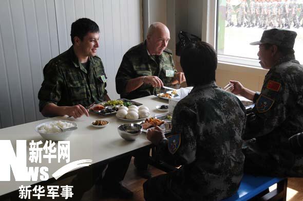 新華軍事:之前你為網(wǎng)友介紹過中方的飲食,按規(guī)定是六菜一湯,比較豐盛。這幾天有沒有機(jī)會(huì)吃到俄軍的飯菜?他們的飲食狀況是怎樣的?