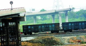 本報訊 匝道坍塌后,橋下的李港鐵路雙向中斷。經(jīng)搶修,昨日鐵路雙向通車。