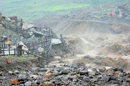 洪水沖毀青川縣東河口地震遺址公園景區(qū)內(nèi)部分游步道,淹沒(méi)東河口小學(xué)遺址;大雨造成的泥石流沖毀景區(qū)紀(jì)念廣場(chǎng),部分路面受損,山洪還沖走移動(dòng)小賣(mài)亭,遺址公園周邊農(nóng)戶房屋也不同程度受損。