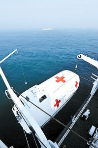 接到求救信號后,海上指揮所迅速派出各支救援分隊趕往事發(fā)海域。艦載救護直升機、海上傷員搜索定位裝置、拋射式救生索、救生吊桿、漂浮擔架、漂浮式救生網(wǎng)、救生浮臺、充氣滑梯等10多種新型海上醫(yī)療救護裝備紛紛亮相,大顯身手,上演了一幕幕扣人心弦的海上生命大救援。