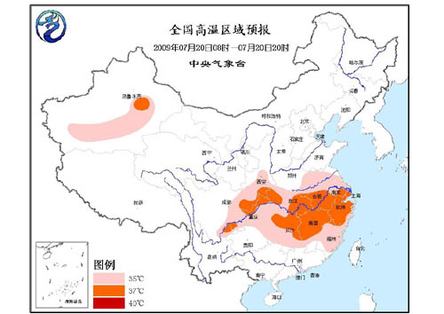 中新網(wǎng)7月20日電 據(jù)中國氣象局網(wǎng)站消息,中央氣象臺20日06時繼續(xù)發(fā)布高溫橙色警報:預(yù)計,今天白天,江南、江淮、江漢、黃淮南部、陜西南部、重慶、四川東部、貴州北部以及新疆南疆盆地等地將有35℃以上的高溫,其中,江南中北部、江淮西南部、湖北東部和西北部、陜西東南部、重慶西北部、四川東部以及吐魯番盆地等地的最高氣溫可達(dá)37~39℃。