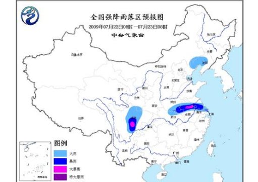 中新網(wǎng)7月22日電 中央氣象臺(tái)22日06時(shí)發(fā)布暴雨預(yù)報(bào):預(yù)計(jì),今天白天到夜間, 遼寧西北部、河南南部、安徽中北部、江蘇中南部、湖北北部、甘肅東南部、四川中部等地的部分地區(qū)有大到暴雨, 其中,四川盆地西南部、安徽中部、江蘇中部的局部地區(qū)有大暴雨。上述部分地區(qū)并伴有短時(shí)雷雨大風(fēng)等強(qiáng)對(duì)流天氣。