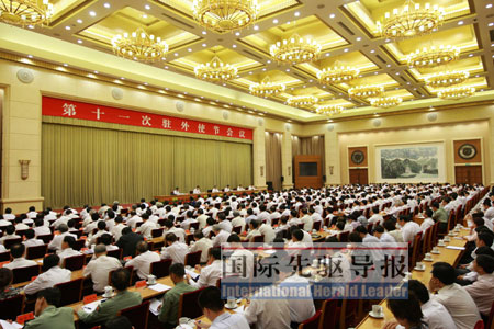 7月17日,京西賓館,中國第十一次駐外使節(jié)會議就在這樣的“簡約”布置中低調(diào)開場。身著白色襯衫的中共中央九大常委全部到場,數(shù)百位中國駐外大使、總領(lǐng)事、駐國際組織代表,以及外交部和有關(guān)部委的負(fù)責(zé)人等也悉數(shù)出席。