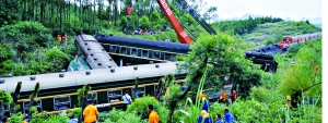 經(jīng)初步調查認定,列車脫軌原因是由于連日持續(xù)強降雨造成山體崩塌掩埋鐵軌所致。