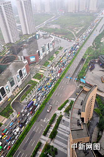 此外,由于暴雨天氣的出現(xiàn),重慶主城內(nèi)環(huán)、成渝、渝武,渝遂等四條高速公路已經(jīng)實行全程封閉,其中百余輛車因成渝高速二郎收費站封閉造成堵塞。主城公交車多因積水熄火或無法前行,主城多出交通大動脈堵塞數(shù)小時。