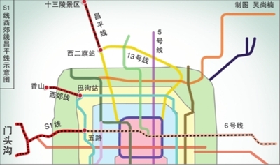 據(jù)了解,S1線東起西四環(huán)定慧橋北五路,西到門頭溝,進(jìn)入門頭溝后會(huì)分叉為兩條線運(yùn)行。