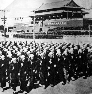 開(kāi)國(guó)大典 閱兵編隊(duì)最少,受閱部隊(duì)主要是陸軍。1949年開(kāi)國(guó)大典閱兵,受閱部隊(duì)16400人,按海、陸、空三軍的序列編組,共6個(gè)編隊(duì)。