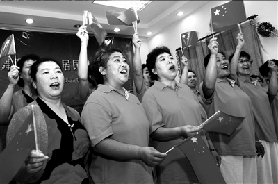 昨天上午,100多民居民手中揮動著五星紅旗,在大院社區(qū)居委會活動室內欣賞歌舞表演。第一個節(jié)目是手語舞蹈《中國人》。12名身穿粉衣的居民用手語舞蹈慶祝國慶。當天共有街舞、獨唱等12個節(jié)目,這些節(jié)目均由社區(qū)居民徐平老師自編自導,部分節(jié)目她還參與演出。