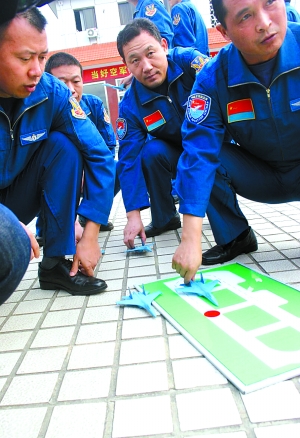 昨天下午5點,將參與此次閱兵的20多名殲擊機飛行員齊聚在一起,在師長劉國勝的帶領下開始了一場地面模擬演練。