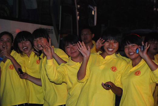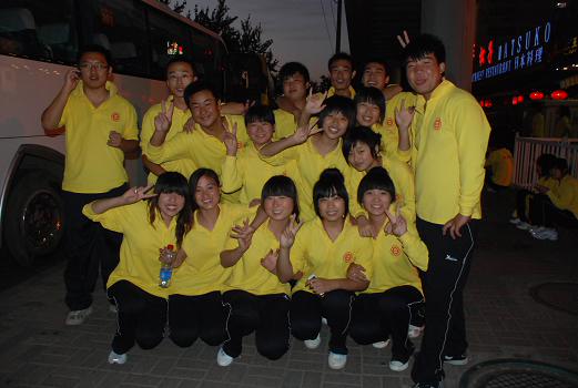 一陣快樂的笑聲引起了記者的注意,原來是一群年輕人在相互用手機拍照留念。他們是來自北京市汽車工業(yè)高級技術(shù)學校的25名學生。參加大型活動對他們來說一點都不陌生,因為他們經(jīng)歷過今年8月8日在“鳥巢”及奧林匹克景觀大道舉行的“三萬人演太極破世界紀錄”的活動!8月8日的活動結(jié)束后,我們就開始準備國慶舞蹈了。大家用了3、4天就學會了。”不過接下來,同學們放棄暑假,用了整整一個月來精益求精。這些90后、80后的大孩子們開朗熱情,對于第一次實地演練檢驗一個多月來的努力成果顯得信心十足興奮不已,他們說,雖然在室外頂著日頭訓練時挺辛苦,但是大家都覺得“特別自豪,特別快樂”,因為“我們能代表北京、代表中國向全世界展示我們國家的繁榮昌盛,這是非常難得的經(jīng)歷”。(記者 劉莉)