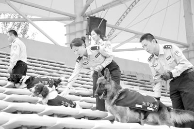 來自北京、天津、內(nèi)蒙古等11個(gè)省市及解放軍北京軍犬基地的近200條國慶安保警犬,近日亮相北京警察訓(xùn)練總隊(duì),進(jìn)行國慶安保集體誓師。據(jù)了解,這些警犬目前正在警察訓(xùn)練總隊(duì)進(jìn)行專業(yè)技術(shù)強(qiáng)化訓(xùn)練,在國慶安保工作中,這支警犬技術(shù)隊(duì)伍將承擔(dān)搜爆、安檢以及刑事案件、突發(fā)事件現(xiàn)場處置等多項(xiàng)工作。