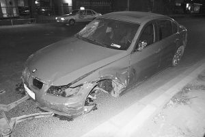 寶馬又惹禍!地上呈粘稠狀的血跡,被撞得四分五裂的電動(dòng)車零部件……昨天(13日)深夜11時(shí)19分,(上海市)浦東滬南路近楊蓮路上,一輛逆向行駛的寶馬轎車在撞飛一名騎電動(dòng)車的中年男子后,又接連撞上一輛帕薩特轎車及一輛出租車,前輪飛出后才停了下來,肇事的年輕女司機(jī)則棄車而去。被撞騎車男子當(dāng)場身亡。