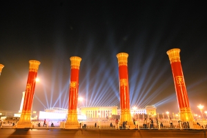 同時,廣場東西兩側(cè)還將懸掛60個紅色的巨型燈籠,象征著祖國六十華誕。
