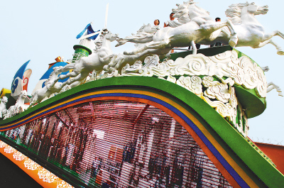 在彩車村,我們許多同事都有一種感覺,一些彩車與我們此前在有關單位看到的模型不一致!懊恳淮窝菥毢驮囓囍螅覀兌紩鶕(jù)負責單位和設計方的要求不斷改進、完善!蔽鞑夭受囍谱鳜F(xiàn)場負責人劉峰回答了我們的疑問。
