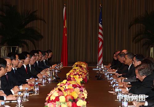 胡錦濤說,我高興地看到,當(dāng)前中美關(guān)系總體上呈現(xiàn)良好發(fā)展勢頭,我和奧巴馬在倫敦達(dá)成的各項(xiàng)共識(shí)正在得到落實(shí),雙方正在共同建設(shè)積極合作全面的中美關(guān)系。