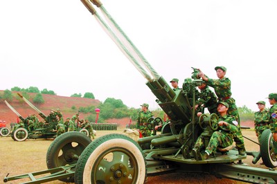 芙蓉區(qū)女子高炮分隊(duì)是會(huì)操現(xiàn)場一道亮麗的風(fēng)景線。隨著一陣響亮整齊的口號聲,90名高炮分隊(duì)的女兵以最快速度將6臺(tái)高炮推進(jìn)至戰(zhàn)斗位置。隨著指揮員“放列”的命令,各個(gè)女炮手迅速找準(zhǔn)各自位置,打扛起螺桿,使火炮輪胎離地,行軍狀態(tài)的火炮立刻轉(zhuǎn)為戰(zhàn)斗狀態(tài)。緊接著,一炮手打動(dòng)方向機(jī),將火炮轉(zhuǎn)到指揮員所指方向,二炮手將火炮打到規(guī)定的射擊高度,三炮手裝上目標(biāo)距離,四炮手裝上目標(biāo)航速和航向,五、六炮手準(zhǔn)備裝填炮彈。女兵們颯爽的英姿給大家留下了深刻的印象。(記者 彭瑋蔚 通訊員 付明 黃岡 周坤)