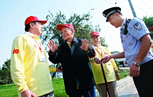 “奧運(yùn)會(huì)舉行時(shí),傅老就是治安志愿者!蔽鞑菔猩鐓^(qū)民警趙亮說,今年一聽說國慶安保也需要志愿者,傅漪泉老人一早兒就報(bào)名參加了。為了照顧老人身體,民警都沒給他固定崗位,但“老人常主動(dòng)在胡同里轉(zhuǎn)!壁w亮還表示,去年除夕傅漪泉老人夜里12點(diǎn)出來巡邏,發(fā)現(xiàn)西草市社區(qū)148號(hào)附近的堆積物上有火苗,趕緊回去告訴家人。家人立即通知趙亮處理,避免了一場火情。