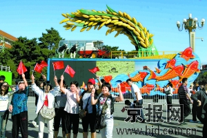 今天上午8時30分,60臺國慶彩車在天安門廣場亮相,開始進行為期6天的集中展示,開放時間比原計劃提前了一個半小時。在兩小時時間內(nèi),數(shù)萬市民和游客涌入廣場參觀,爭相與彩車合影,國慶彩車當之無愧地成為今天的廣場明星。