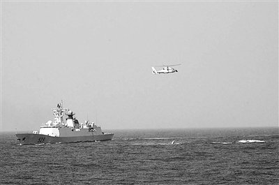 “白鷺洲”號油輪船員一面用消防水龍頭向接近的“海盜快艇”噴射高壓水流,一面向我海軍護(hù)航編隊(duì)求救!爸凵健迸炄缫粭l白色蛟龍,疾速向“海盜快艇”聚集海域駛來。我護(hù)航編隊(duì)直升機(jī)上特戰(zhàn)隊(duì)員接連對“海盜快艇”進(jìn)行攔阻射擊,并由“舟山”艦派出2艘艦載小艇對“海盜快艇”進(jìn)行登臨檢查。“藍(lán)天戰(zhàn)鷹”和“銀色蛟龍”聯(lián)手驅(qū)散了船員心中的陰霾。