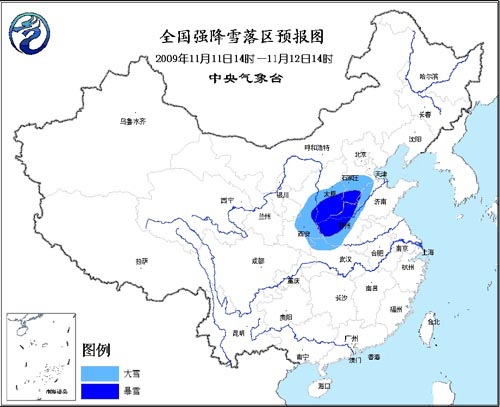 中新網(wǎng)11月11日電 中央氣象臺11日10時發(fā)布暴雪橙色警報:受冷暖空氣的共同影響,預(yù)計今天下午到明天中午,陜西中部、山西中南部、河北中南部、河南北部和西部、湖北西北部、山東西北部等地有大雪,其中,陜西中部的局部地區(qū)、山西南部、河北南部、河南北部等地有暴雪,降水量一般有8~16毫米,局地達(dá)20毫米以上。