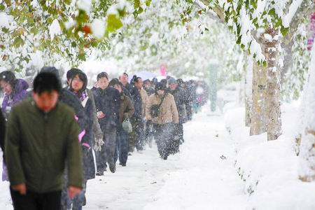 11月10日晚至12日8時,鄭州地區(qū)第一場暴雪的平均雨雪量達37.8毫米,鄭州市區(qū)雨雪量最大,為45.6毫米,積雪深度為32厘米,這是鄭州市區(qū)有氣象記錄以來最大的一次。據(jù)嵩山氣象站觀測,10日以后,山區(qū)的氣溫降至零下7.1℃,降溫幅度接近20℃。受大霧、低溫和凍雨的影響,嵩山形成了獨特的霧凇雨凇景觀,直徑達16毫米。此次降雪中,鶴壁等地前幾個月降水量不足的地區(qū),當?shù)貧庀蟛块T適時展開了人工增雪作業(yè)。